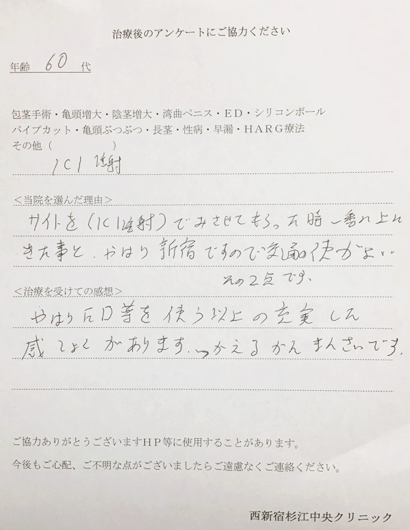 実際にICI注射を体験した患者様の声です。