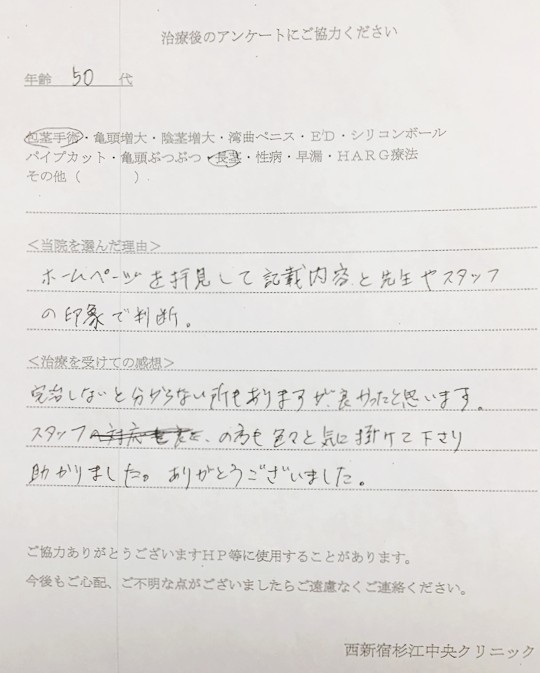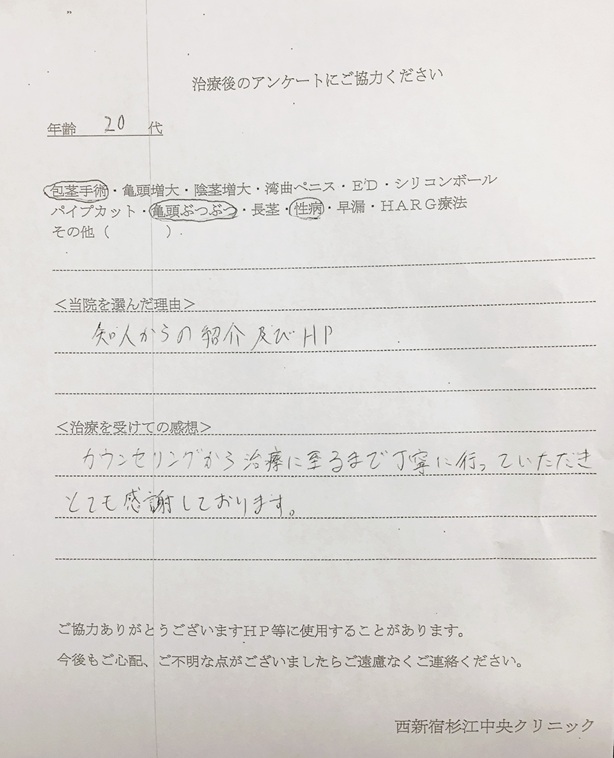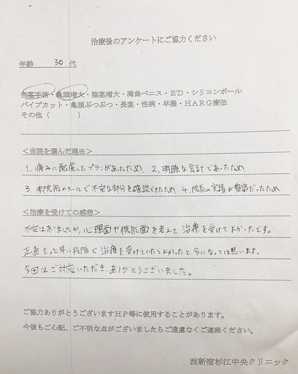 包茎手術 口コミ アンケート | 西新宿杉江中央クリニック