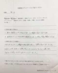 完治しないと分からない所もありますが、良かったと思います。